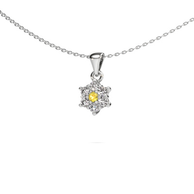 How would you describe your style? Do you like things slightly different? At the very least, this cluster platinum pendant Chantal is unique, made especially by jewel designers. Our goldsmith will create your pendant to perfection by hand in our own artisan studio. This classic pendant is set with a yellow sapphire. These yellow sapphire are selected with great care because we believe your cluster pendant should be adorned with nothing less than the finest gemstones available. Wouldn't you agree?A customized classic cluster pendant is the perfect gift! New exquisite designs are added daily by our team of passionate goldsmiths. And each design can be customized. Simply customize the precious metals and the colour of gemstones which will be used, for example. This makes your design of the classic Chantal pendant truly unique!Our team of talented, passionate designers add new pendant designs to our online collection daily. Our objective in doing so, is to be able to offer you a wide variety of jewels. Please feel free to request a quote if you have specific wishes for your pendant. We guarantee to make you an offer you can't refuse.By using a combination of the latest modern techniques, combined with ancient crafting, we can make all our pendants in our own studio. Each jewel is made to order. This is advantageous because we can offer you a price you won't find anywhere else.To make it easier for you, we offer a 30 day return policy. Check our terms and conditions.