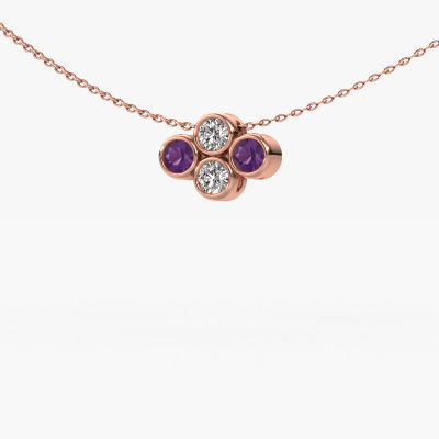 What a beautiful, contemporary pendant! A round pendant to finish your outfit. Buy it from DiamondsByMe. Our goldsmiths use the finest precious metals and gemstones to create our most extraordinary pieces of jewellery. Take this fantasy rose gold amethyst set Judi pendant, for example. It was selected with great care, because your pendant should only be adorned with the finest amethysten. Our goldsmith will make your pendant by hand and will set the amethyst with great precision. Then it will be finished and polished to perfection, leaving you with a stunning pendant as a result!A customized fantasy round pendant is the perfect gift! New exquisite designs are added daily by our team of passionate goldsmiths. And each design can be customized. Simply customize the precious metals and the colour of gemstones which will be used, for example. This makes your design of the fantasy Judi pendant truly unique!