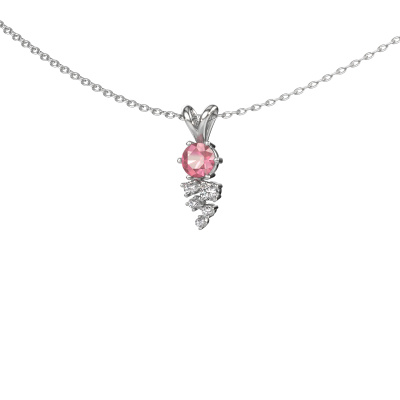 This fantasy pendant Royce is set with a stunning round tourmaline pink. In the past, gemstones were believed to have specific characteristics. Choose your gemstones based on these characteristics, or because they suit you, or because you simply like the colour. Whether you believe birthstones have certain characteristics or not, this graceful pendant set with a carefully selected tourmaline pink is truly eye-catching. A beautiful pendant to finish your outfit. You can also have the pendant set with your own or your children's birthstones, giving your pendant an extra meaning. Here the platinum pendant is set with 4 mm tourmaline pink. A customized fantasy graceful pendant is the perfect gift! New exquisite designs are added daily by our team of passionate goldsmiths. And each design can be customized. Simply customize the precious metals and the colour of gemstones which will be used, for example. This makes your design of the fantasy Royce pendant truly unique!