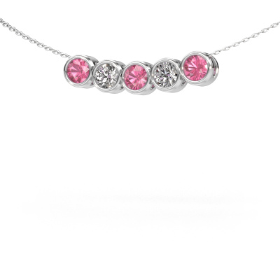 How would you describe your style? Do you like things slightly different? At the very least, this elegant white gold necklace Kim 5 is unique, made especially by jewel designers. Our goldsmith will create your pendant to perfection by hand in our own artisan studio. This fashionable necklace is set with a pink sapphire. These pink sapphire are selected with great care because we believe your elegant necklace should be adorned with nothing less than the finest gemstones available. Wouldn't you agree?What could possibly be more beautiful than a personally designed fashionable necklace, handmade by yours truly? Please, feel free to customize each model by choosing different precious metals and gemstones. This makes your necklace truly unique. This necklace can be customized to your liking. It goes without saying that you can also ask us for help. We are more than willing to assist in designing your Kim 5 fashionable necklace. If you like but still have specific wishes concerning customizing your design, such as adding a gemstone which isn't mentioned in the list, feel free to contact us. We will gladly inform you on different options.