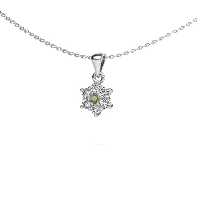 How would you describe your style? Do you like things slightly different? At the very least, this cluster white gold pendant Chantal is unique, made especially by jewel designers. Our goldsmith will create your pendant to perfection by hand in our own artisan studio. This classic pendant is set with a tourmaline green. These tourmaline green are selected with great care because we believe your cluster pendant should be adorned with nothing less than the finest gemstones available. Wouldn't you agree?A customized classic cluster pendant is the perfect gift! New exquisite designs are added daily by our team of passionate goldsmiths. And each design can be customized. Simply customize the precious metals and the colour of gemstones which will be used, for example. This makes your design of the classic Chantal pendant truly unique!Our team of talented, passionate designers add new pendant designs to our online collection daily. Our objective in doing so, is to be able to offer you a wide variety of jewels. Please feel free to request a quote if you have specific wishes for your pendant. We guarantee to make you an offer you can't refuse.By using a combination of the latest modern techniques, combined with ancient crafting, we can make all our pendants in our own studio. Each jewel is made to order. This is advantageous because we can offer you a price you won't find anywhere else.To make it easier for you, we offer a 30 day return policy. Check our terms and conditions.