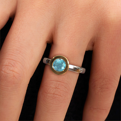 Stacked rings are the perfect addition to your ring collection. They are very popular! This 14 Carat white gold stacking ring with round blue topaz can be combined with other stacked rings or a ring you currently own. A stacked ring is a perfect reminder of a memorable moment or a loved one. Stack the milestones in your life and let the rings do the talking. This 1 stone stacking ring is called Eloise Round. It was designed by our own expert goldsmiths and we still make it by hand in our own artisan studio. Simply customize to your liking!A customized trendy stacking ring is the perfect gift! New exquisite designs are added daily by our team of passionate goldsmiths. And each design can be customized. Simply customize the precious metals and the colour of gemstones which will be used, for example. This makes your design of the trendy Eloise Round stacking ring truly unique!After receiving your order, our goldsmiths will passionately start the creative process of making your ring in our own studio. Because we don't have a big stockpile, these costs will not be passed on to you. Our pricing is proof of that! We offer top quality jewels at lowest price, guaranteed.To make it easier for you, we offer a 30 day return policy. Check our terms and conditions.