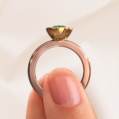 Stacked rings are the perfect addition to your ring collection. They are very popular! This 14 Carat rose gold stacking ring with round emerald can be combined with other stacked rings or a ring you currently own. A stacked ring is a perfect reminder of a memorable moment or a loved one. Stack the milestones in your life and let the rings do the talking. This 1 stone stacking ring is called Eloise Round. It was designed by our own expert goldsmiths and we still make it by hand in our own artisan studio. Simply customize to your liking!A customized trendy stacking ring is the perfect gift! New exquisite designs are added daily by our team of passionate goldsmiths. And each design can be customized. Simply customize the precious metals and the colour of gemstones which will be used, for example. This makes your design of the trendy Eloise Round stacking ring truly unique!After receiving your order, our goldsmiths will passionately start the creative process of making your ring in our own studio. Because we don't have a big stockpile, these costs will not be passed on to you. Our pricing is proof of that! We offer top quality jewels at lowest price, guaranteed.To make it easier for you, we offer a 30 day return policy. Check our terms and conditions.