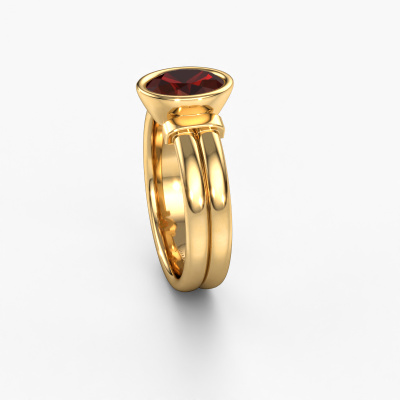 This ring called Gerda is made of 14 Carat gold and is set with garnet. Are you in the market for a unique gold ring with a modern twist? Then this ring might suit you. Simply customize to your or her liking. It suits the contemporary modern woman. This 1 stone ring is set with beautiful garnet. This has been carefully selected. Because your ring must be adorned with nothing but the most stunning gemstone. Our expert goldsmith will create your ring in our own studio, where the garnet will be set with great care. The ring will then be polished to perfection to create a stunning ring. After receiving your order, our goldsmiths will passionately start the creative process of making your ring in our own studio. Because we don't have a big stockpile, these costs will not be passed on to you. Our pricing is proof of that! We offer top quality jewels at lowest price, guaranteed.New jewellery designs are added to our online collection daily. Our team of passionate designers strive to create extraordinary and diverse designs. Have you seen a ring you like? Please feel free to contact us. Based on a good price/ quality ratio, we will make you an offer you can't refuse!To make it easier for you, we offer a 30 day return policy. Check our terms and conditions.