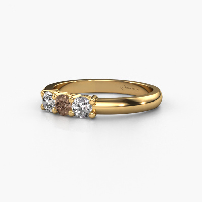 This extraordinary ring is called Michelle 3. This type of ring is known as a memoire ring, because its gemstones are set in a continuous line. This makes it easy to combine with other rings. The band of this 14 Carat gold ring is set in a combination of brown diamond and lab grown diamond 0.60 crt. You can easily choose the combination you prefer online. As you can see, a single brown diamond is set in this single alliance gold ring. The memoire ring represents collaboration. And that is precisely what these gemstones do, collaborate. Together they add a beautiful effect to the band of a classic ring! Such a meaningful ring, wouldn't you agree? All our hand selected brown diamonds are positioned by hand by our expert goldsmith. It's a precise task, which can only be completed successfully through the combination of pure craftsmanship and usage of the latest techniques which give it an optimal effect. To create a perfect reflection of light, all the gemstones have to be perfectly aligned in the same way. During manufacturing, the expert goldsmith will therefore monitor the reflection of light constantly to check whether the brown diamonds are aligned properly. This requires a skilled hand and a lot of patience but then the end product will be a true piece of art. And that is our mission!Are you on a budget? Please feel free to contact us, so we can go discuss your options. We offer our rings at guaranteed best price, because we make them to order. You won't find such a price anywhere else!