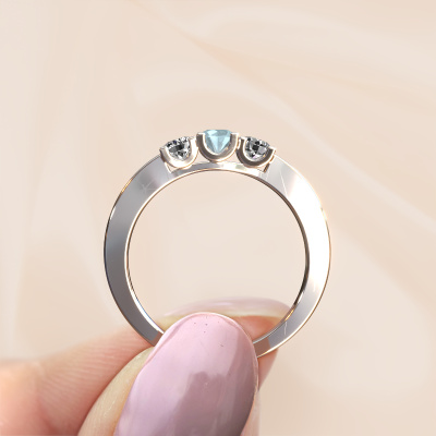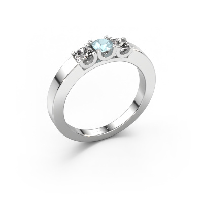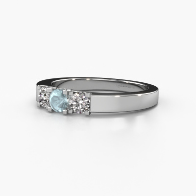 This extraordinary ring is called Selina 1. This type of ring is known as a memoire ring, because its gemstones are set in a continuous line. This makes it easy to combine with other rings. The band of this platinum ring is set in a combination of aquamarine and diamond 3.7 mm. You can easily choose the combination you prefer online. As you can see, a single aquamarine is set in this single alliance platinum ring. The memoire ring represents collaboration. And that is precisely what these gemstones do, collaborate. Together they add a beautiful effect to the band of a modern ring! Such a meaningful ring, wouldn't you agree? All our hand selected aquamarine are positioned by hand by our expert goldsmith. It's a precise task, which can only be completed successfully through the combination of pure craftsmanship and usage of the latest techniques which give it an optimal effect. To create a perfect reflection of light, all the gemstones have to be perfectly aligned in the same way. During manufacturing, the expert goldsmith will therefore monitor the reflection of light constantly to check whether the aquamarine are aligned properly. This requires a skilled hand and a lot of patience but then the end product will be a true piece of art. And that is our mission!By using our modern techniques, we can design and customize the finest quality jewels with the utmost care for you. Our rings are always priced 30 percent lower than other jewellers. We make rings to order, so we don't have to maintain a large stock. If you have a certain budget, we are more than happy to advice you accordingly.New jewellery designs are added to our online collection daily. Our team of passionate designers strive to create extraordinary and diverse designs. Have you seen a ring you like? Please feel free to contact us. Based on a good price/ quality ratio, we will make you an offer you can't refuse!To make it easier for you, we offer a 30 day return policy. Check our terms and conditions.