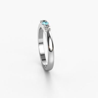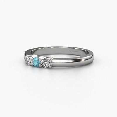 This extraordinary ring is called Yasmin 3. This type of ring is known as a memoire ring, because its gemstones are set in a continuous line. This makes it easy to combine with other rings. The band of this platinum ring is set in a combination of blue topaz and lab grown diamond 3 mm. You can easily choose the combination you prefer online. As you can see, a single blue topaz is set in this single alliance platinum ring. The memoire ring represents collaboration. And that is precisely what these gemstones do, collaborate. Together they add a beautiful effect to the band of a classic ring! Such a meaningful ring, wouldn't you agree? All our hand selected blue topaz are positioned by hand by our expert goldsmith. It's a precise task, which can only be completed successfully through the combination of pure craftsmanship and usage of the latest techniques which give it an optimal effect. To create a perfect reflection of light, all the gemstones have to be perfectly aligned in the same way. During manufacturing, the expert goldsmith will therefore monitor the reflection of light constantly to check whether the blue topaz are aligned properly. This requires a skilled hand and a lot of patience but then the end product will be a true piece of art. And that is our mission!By using a combination of the latest modern techniques, combined with ancient crafting, we can make all our rings in our own studio. Each jewel is made to order. This is advantageous because we can offer you a price you won't find anywhere else.Our talented designers add new designs to our online collection daily. Together they create a diverse collection of the finest jewellery. If you prefer to make a ring according your own design, please feel free to request a quote. We will make you an amazing offer, based on quality and price.To make it easier for you, we offer a 30 day return policy. Check our terms and conditions.