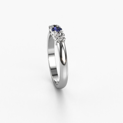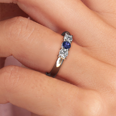 This extraordinary ring is called Michelle 3. This type of ring is known as a memoire ring, because its gemstones are set in a continuous line. This makes it easy to combine with other rings. The band of this platinum ring is set in a combination of sapphire and lab grown diamond 3.7 mm. You can easily choose the combination you prefer online. As you can see, a single sapphire is set in this single alliance platinum ring. The memoire ring represents collaboration. And that is precisely what these gemstones do, collaborate. Together they add a beautiful effect to the band of a classic ring! Such a meaningful ring, wouldn't you agree? All our hand selected sapphire are positioned by hand by our expert goldsmith. It's a precise task, which can only be completed successfully through the combination of pure craftsmanship and usage of the latest techniques which give it an optimal effect. To create a perfect reflection of light, all the gemstones have to be perfectly aligned in the same way. During manufacturing, the expert goldsmith will therefore monitor the reflection of light constantly to check whether the sapphire are aligned properly. This requires a skilled hand and a lot of patience but then the end product will be a true piece of art. And that is our mission!Are you on a budget? Please feel free to contact us, so we can go discuss your options. We offer our rings at guaranteed best price, because we make them to order. You won't find such a price anywhere else!