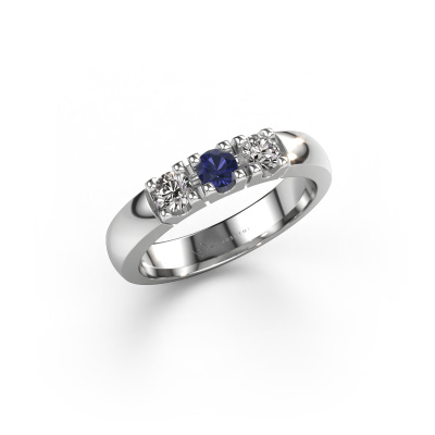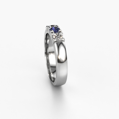 This extraordinary ring is called Rianne 3. This type of ring is known as a memoire ring, because its gemstones are set in a continuous line. This makes it easy to combine with other rings. The band of this platinum ring is set in a combination of sapphire and diamond 3.4 mm. You can easily choose the combination you prefer online. As you can see, a single sapphire is set in this single alliance platinum ring. The memoire ring represents collaboration. And that is precisely what these gemstones do, collaborate. Together they add a beautiful effect to the band of a classic ring! Such a meaningful ring, wouldn't you agree? All our hand selected sapphire are positioned by hand by our expert goldsmith. It's a precise task, which can only be completed successfully through the combination of pure craftsmanship and usage of the latest techniques which give it an optimal effect. To create a perfect reflection of light, all the gemstones have to be perfectly aligned in the same way. During manufacturing, the expert goldsmith will therefore monitor the reflection of light constantly to check whether the sapphire are aligned properly. This requires a skilled hand and a lot of patience but then the end product will be a true piece of art. And that is our mission!After receiving your order, our goldsmiths will passionately start the creative process of making your ring in our own studio. Because we don't have a big stockpile, these costs will not be passed on to you. Our pricing is proof of that! We offer top quality jewels at lowest price, guaranteed.Our team of talented, passionate designers add new ring designs to our online collection daily. Our objective in doing so, is to be able to offer you a wide variety of jewels. Please feel free to request a quote if you have specific wishes for your ring. We guarantee to make you an offer you can't refuse.To make it easier for you, we offer a 30 day return policy. Check our terms and conditions.