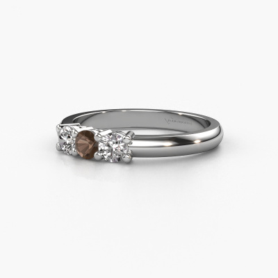 This extraordinary ring is called Michelle 3. This type of ring is known as a memoire ring, because its gemstones are set in a continuous line. This makes it easy to combine with other rings. The band of this platinum ring is set in a combination of smokey quartz and lab grown diamond 3.7 mm. You can easily choose the combination you prefer online. As you can see, a single smokey quartz is set in this single alliance platinum ring. The memoire ring represents collaboration. And that is precisely what these gemstones do, collaborate. Together they add a beautiful effect to the band of a classic ring! Such a meaningful ring, wouldn't you agree? All our hand selected smokey quartz are positioned by hand by our expert goldsmith. It's a precise task, which can only be completed successfully through the combination of pure craftsmanship and usage of the latest techniques which give it an optimal effect. To create a perfect reflection of light, all the gemstones have to be perfectly aligned in the same way. During manufacturing, the expert goldsmith will therefore monitor the reflection of light constantly to check whether the smokey quartz are aligned properly. This requires a skilled hand and a lot of patience but then the end product will be a true piece of art. And that is our mission!Are you on a budget? Please feel free to contact us, so we can go discuss your options. We offer our rings at guaranteed best price, because we make them to order. You won't find such a price anywhere else!