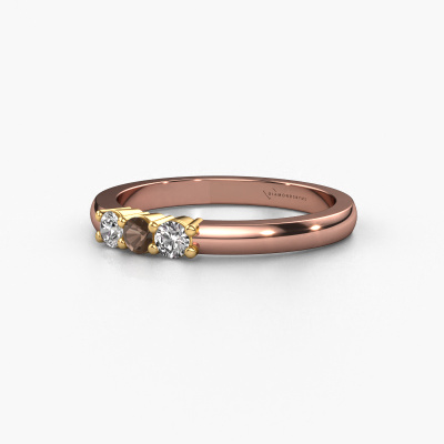 This extraordinary ring is called Yasmin 3. This type of ring is known as a memoire ring, because its gemstones are set in a continuous line. This makes it easy to combine with other rings. The band of this 14 Carat rose gold ring is set in a combination of smokey quartz and lab grown diamond 3 mm. You can easily choose the combination you prefer online. As you can see, a single smokey quartz is set in this single alliance rose gold ring. The memoire ring represents collaboration. And that is precisely what these gemstones do, collaborate. Together they add a beautiful effect to the band of a classic ring! Such a meaningful ring, wouldn't you agree? All our hand selected smokey quartz are positioned by hand by our expert goldsmith. It's a precise task, which can only be completed successfully through the combination of pure craftsmanship and usage of the latest techniques which give it an optimal effect. To create a perfect reflection of light, all the gemstones have to be perfectly aligned in the same way. During manufacturing, the expert goldsmith will therefore monitor the reflection of light constantly to check whether the smokey quartz are aligned properly. This requires a skilled hand and a lot of patience but then the end product will be a true piece of art. And that is our mission!By using a combination of the latest modern techniques, combined with ancient crafting, we can make all our rings in our own studio. Each jewel is made to order. This is advantageous because we can offer you a price you won't find anywhere else.Our talented designers add new designs to our online collection daily. Together they create a diverse collection of the finest jewellery. If you prefer to make a ring according your own design, please feel free to request a quote. We will make you an amazing offer, based on quality and price.To make it easier for you, we offer a 30 day return policy. Check our terms and conditions.