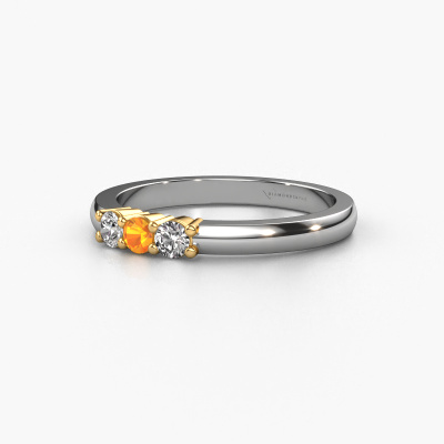 This extraordinary ring is called Yasmin 3. This type of ring is known as a memoire ring, because its gemstones are set in a continuous line. This makes it easy to combine with other rings. The band of this 14 Carat white gold ring is set in a combination of citrin and lab grown diamond 3 mm. You can easily choose the combination you prefer online. As you can see, a single citrin is set in this single alliance white gold ring. The memoire ring represents collaboration. And that is precisely what these gemstones do, collaborate. Together they add a beautiful effect to the band of a classic ring! Such a meaningful ring, wouldn't you agree? All our hand selected citrin are positioned by hand by our expert goldsmith. It's a precise task, which can only be completed successfully through the combination of pure craftsmanship and usage of the latest techniques which give it an optimal effect. To create a perfect reflection of light, all the gemstones have to be perfectly aligned in the same way. During manufacturing, the expert goldsmith will therefore monitor the reflection of light constantly to check whether the citrin are aligned properly. This requires a skilled hand and a lot of patience but then the end product will be a true piece of art. And that is our mission!By using a combination of the latest modern techniques, combined with ancient crafting, we can make all our rings in our own studio. Each jewel is made to order. This is advantageous because we can offer you a price you won't find anywhere else.Our talented designers add new designs to our online collection daily. Together they create a diverse collection of the finest jewellery. If you prefer to make a ring according your own design, please feel free to request a quote. We will make you an amazing offer, based on quality and price.To make it easier for you, we offer a 30 day return policy. Check our terms and conditions.