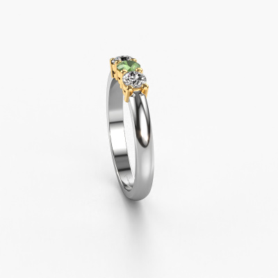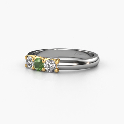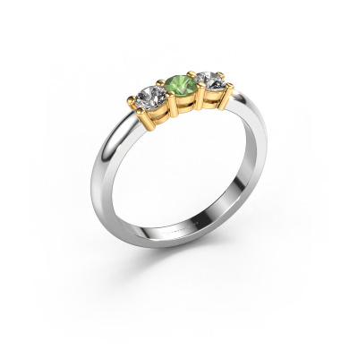 This extraordinary ring is called Michelle 3. This type of ring is known as a memoire ring, because its gemstones are set in a continuous line. This makes it easy to combine with other rings. The band of this 14 Carat white gold ring is set in a combination of tourmaline green and lab grown diamond 3.7 mm. You can easily choose the combination you prefer online. As you can see, a single tourmaline green is set in this single alliance white gold ring. The memoire ring represents collaboration. And that is precisely what these gemstones do, collaborate. Together they add a beautiful effect to the band of a classic ring! Such a meaningful ring, wouldn't you agree? All our hand selected tourmaline green are positioned by hand by our expert goldsmith. It's a precise task, which can only be completed successfully through the combination of pure craftsmanship and usage of the latest techniques which give it an optimal effect. To create a perfect reflection of light, all the gemstones have to be perfectly aligned in the same way. During manufacturing, the expert goldsmith will therefore monitor the reflection of light constantly to check whether the tourmaline green are aligned properly. This requires a skilled hand and a lot of patience but then the end product will be a true piece of art. And that is our mission!Are you on a budget? Please feel free to contact us, so we can go discuss your options. We offer our rings at guaranteed best price, because we make them to order. You won't find such a price anywhere else!
