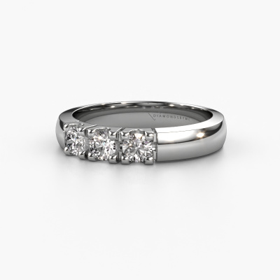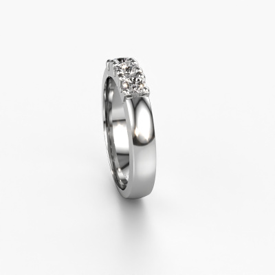 This extraordinary ring is called Rianne 3. This type of ring is known as a memoire ring, because its gemstones are set in a continuous line. This makes it easy to combine with other rings. The band of this 14 Carat white gold ring is set in a combination of lab grown diamond and diamond 0.450 crt. You can easily choose the combination you prefer online. As you can see, a single lab grown diamond is set in this single alliance white gold ring. The memoire ring represents collaboration. And that is precisely what these gemstones do, collaborate. Together they add a beautiful effect to the band of a classic ring! Such a meaningful ring, wouldn't you agree? All our hand selected lab-grown diamonds are positioned by hand by our expert goldsmith. It's a precise task, which can only be completed successfully through the combination of pure craftsmanship and usage of the latest techniques which give it an optimal effect. To create a perfect reflection of light, all the gemstones have to be perfectly aligned in the same way. During manufacturing, the expert goldsmith will therefore monitor the reflection of light constantly to check whether the lab-grown diamonds are aligned properly. This requires a skilled hand and a lot of patience but then the end product will be a true piece of art. And that is our mission!After receiving your order, our goldsmiths will passionately start the creative process of making your ring in our own studio. Because we don't have a big stockpile, these costs will not be passed on to you. Our pricing is proof of that! We offer top quality jewels at lowest price, guaranteed.Our team of talented, passionate designers add new ring designs to our online collection daily. Our objective in doing so, is to be able to offer you a wide variety of jewels. Please feel free to request a quote if you have specific wishes for your ring. We guarantee to make you an offer you can't refuse.To make it easier for you, we offer a 30 day return policy. Check our terms and conditions.