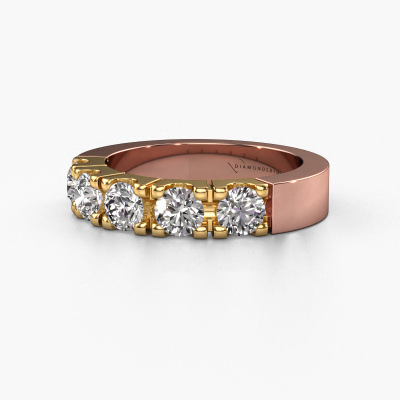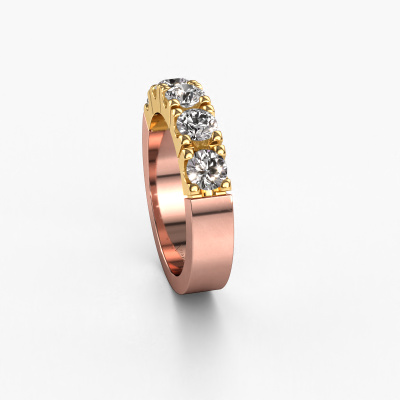 This extraordinary ring is called Dana 5. This type of ring is known as a memoire ring, because its gemstones are set in a continuous line. This makes it easy to combine with other rings. The band of this 14 Carat rose gold ring is set in a combination of diamond and diamond 1.50 crt. You can easily choose the combination you prefer online. As you can see, a single diamond is set in this single alliance rose gold ring. The memoire ring represents collaboration. And that is precisely what these gemstones do, collaborate. Together they add a beautiful effect to the band of a modern ring! Such a meaningful ring, wouldn't you agree? All our hand selected diamonds are positioned by hand by our expert goldsmith. It's a precise task, which can only be completed successfully through the combination of pure craftsmanship and usage of the latest techniques which give it an optimal effect. To create a perfect reflection of light, all the gemstones have to be perfectly aligned in the same way. During manufacturing, the expert goldsmith will therefore monitor the reflection of light constantly to check whether the diamonds are aligned properly. This requires a skilled hand and a lot of patience but then the end product will be a true piece of art. And that is our mission!Because we design and deliver our own rings, we can offer you a ring at a price you won't find anywhere else. A ring is made to order, which helps prevent excess supplies, so we can make you a great price offer. We understand it feels risky, buying your ring online, but we will gladly assist in the designing process, taking your budget into consideration.New jewellery designs are added to our online collection daily. Our team of passionate designers strive to create extraordinary and diverse designs. Have you seen a ring you like? Please feel free to contact us. Based on a good price/ quality ratio, we will make you an offer you can't refuse!To make it easier for you, we offer a 30 day return policy. Check our terms and conditions.