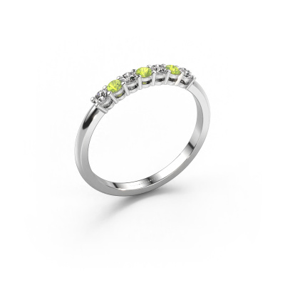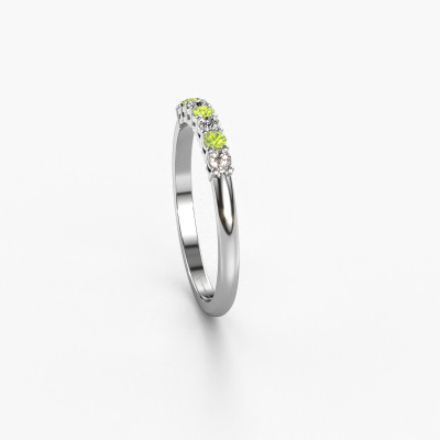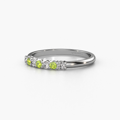 This extraordinary ring is called Michelle 7. This type of ring is known as a memoire ring, because its gemstones are set in a continuous line. This makes it easy to combine with other rings. The band of this platinum ring is set in a combination of peridot and diamond 2 mm. You can easily choose the combination you prefer online. As you can see, a single peridot is set in this single alliance platinum ring. The memoire ring represents collaboration. And that is precisely what these gemstones do, collaborate. Together they add a beautiful effect to the band of a classic ring! Such a meaningful ring, wouldn't you agree? All our hand selected peridot are positioned by hand by our expert goldsmith. It's a precise task, which can only be completed successfully through the combination of pure craftsmanship and usage of the latest techniques which give it an optimal effect. To create a perfect reflection of light, all the gemstones have to be perfectly aligned in the same way. During manufacturing, the expert goldsmith will therefore monitor the reflection of light constantly to check whether the peridot are aligned properly. This requires a skilled hand and a lot of patience but then the end product will be a true piece of art. And that is our mission!After receiving your order, our goldsmiths will passionately start the creative process of making your ring in our own studio. Because we don't have a big stockpile, these costs will not be passed on to you. Our pricing is proof of that! We offer top quality jewels at lowest price, guaranteed.