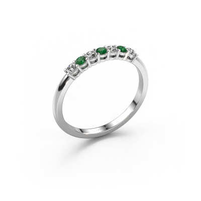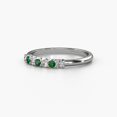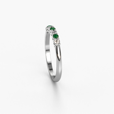 This extraordinary ring is called Michelle 7. This type of ring is known as a memoire ring, because its gemstones are set in a continuous line. This makes it easy to combine with other rings. The band of this 14 Carat white gold ring is set in a combination of emerald and diamond 2 mm. You can easily choose the combination you prefer online. As you can see, a single emerald is set in this single alliance white gold ring. The memoire ring represents collaboration. And that is precisely what these gemstones do, collaborate. Together they add a beautiful effect to the band of a classic ring! Such a meaningful ring, wouldn't you agree? All our hand selected emerald are positioned by hand by our expert goldsmith. It's a precise task, which can only be completed successfully through the combination of pure craftsmanship and usage of the latest techniques which give it an optimal effect. To create a perfect reflection of light, all the gemstones have to be perfectly aligned in the same way. During manufacturing, the expert goldsmith will therefore monitor the reflection of light constantly to check whether the emerald are aligned properly. This requires a skilled hand and a lot of patience but then the end product will be a true piece of art. And that is our mission!After receiving your order, our goldsmiths will passionately start the creative process of making your ring in our own studio. Because we don't have a big stockpile, these costs will not be passed on to you. Our pricing is proof of that! We offer top quality jewels at lowest price, guaranteed.