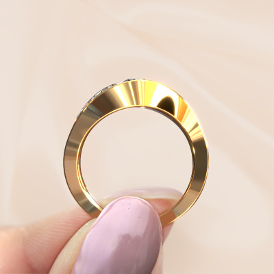 This ring called Sigrid 2 is made of 14 Carat gold and is set with diamond. Are you in the market for a unique gold ring with a modern twist? Then this ring might suit you. Simply customize to your or her liking. It suits the contemporary modern woman. This 9 stones ring is set with beautiful diamond. This has been carefully selected. Because your ring must be adorned with nothing but the most stunning gemstone. Our expert goldsmith will create your ring in our own studio, where the diamond will be set with great care. The ring will then be polished to perfection to create a stunning ring. By using a combination of the latest modern techniques, combined with ancient crafting, we can make all our rings in our own studio. Each jewel is made to order. This is advantageous because we can offer you a price you won't find anywhere else.Our team of talented, passionate designers add new ring designs to our online collection daily. Our objective in doing so, is to be able to offer you a wide variety of jewels. Please feel free to request a quote if you have specific wishes for your ring. We guarantee to make you an offer you can't refuse.To make it easier for you, we offer a 30 day return policy. Check our terms and conditions.