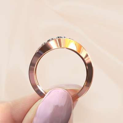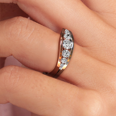 This ring called Sigrid 2 is made of 14 Carat rose gold and is set with lab grown diamond. Are you in the market for a unique rose gold ring with a modern twist? Then this ring might suit you. Simply customize to your or her liking. It suits the contemporary modern woman. This 9 stones ring is set with beautiful lab grown diamond. This has been carefully selected. Because your ring must be adorned with nothing but the most stunning gemstone. Our expert goldsmith will create your ring in our own studio, where the lab grown diamond will be set with great care. The ring will then be polished to perfection to create a stunning ring. By using a combination of the latest modern techniques, combined with ancient crafting, we can make all our rings in our own studio. Each jewel is made to order. This is advantageous because we can offer you a price you won't find anywhere else.Our team of talented, passionate designers add new ring designs to our online collection daily. Our objective in doing so, is to be able to offer you a wide variety of jewels. Please feel free to request a quote if you have specific wishes for your ring. We guarantee to make you an offer you can't refuse.To make it easier for you, we offer a 30 day return policy. Check our terms and conditions.