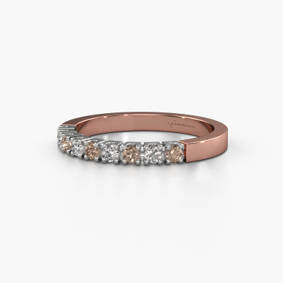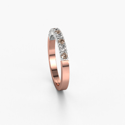 This extraordinary ring is called Dana 9. This type of ring is known as a memoire ring, because its gemstones are set in a continuous line. This makes it easy to combine with other rings. The band of this 14 Carat rose gold ring is set in a combination of brown diamond and diamond 0.27 crt. You can easily choose the combination you prefer online. As you can see, a single brown diamond is set in this single alliance rose gold ring. The memoire ring represents collaboration. And that is precisely what these gemstones do, collaborate. Together they add a beautiful effect to the band of a modern ring! Such a meaningful ring, wouldn't you agree? All our hand selected brown diamonds are positioned by hand by our expert goldsmith. It's a precise task, which can only be completed successfully through the combination of pure craftsmanship and usage of the latest techniques which give it an optimal effect. To create a perfect reflection of light, all the gemstones have to be perfectly aligned in the same way. During manufacturing, the expert goldsmith will therefore monitor the reflection of light constantly to check whether the brown diamonds are aligned properly. This requires a skilled hand and a lot of patience but then the end product will be a true piece of art. And that is our mission!After receiving your order, our goldsmiths will passionately start the creative process of making your ring in our own studio. Because we don't have a big stockpile, these costs will not be passed on to you. Our pricing is proof of that! We offer top quality jewels at lowest price, guaranteed.Our talented designers add new designs to our online collection daily. Together they create a diverse collection of the finest jewellery. If you prefer to make a ring according your own design, please feel free to request a quote. We will make you an amazing offer, based on quality and price.To make it easier for you, we offer a 30 day return policy. Check our terms and conditions.