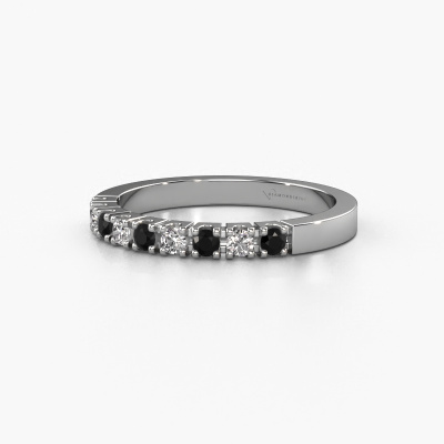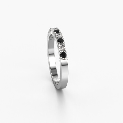 This extraordinary ring is called Dana 9. This type of ring is known as a memoire ring, because its gemstones are set in a continuous line. This makes it easy to combine with other rings. The band of this 14 Carat white gold ring is set in a combination of black diamond and diamond 0.30 crt. You can easily choose the combination you prefer online. As you can see, a single black diamond is set in this single alliance white gold ring. The memoire ring represents collaboration. And that is precisely what these gemstones do, collaborate. Together they add a beautiful effect to the band of a modern ring! Such a meaningful ring, wouldn't you agree? All our hand selected black diamonds are positioned by hand by our expert goldsmith. It's a precise task, which can only be completed successfully through the combination of pure craftsmanship and usage of the latest techniques which give it an optimal effect. To create a perfect reflection of light, all the gemstones have to be perfectly aligned in the same way. During manufacturing, the expert goldsmith will therefore monitor the reflection of light constantly to check whether the black diamonds are aligned properly. This requires a skilled hand and a lot of patience but then the end product will be a true piece of art. And that is our mission!After receiving your order, our goldsmiths will passionately start the creative process of making your ring in our own studio. Because we don't have a big stockpile, these costs will not be passed on to you. Our pricing is proof of that! We offer top quality jewels at lowest price, guaranteed.Our talented designers add new designs to our online collection daily. Together they create a diverse collection of the finest jewellery. If you prefer to make a ring according your own design, please feel free to request a quote. We will make you an amazing offer, based on quality and price.To make it easier for you, we offer a 30 day return policy. Check our terms and conditions.