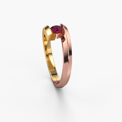 This ring called Paulette is made of 14 Carat rose gold and is set with rhodolite. Are you in the market for a unique rose gold ring with a modern twist? Then this ring might suit you. Simply customize to your or her liking. It suits the contemporary modern woman. This affordable ring is set with beautiful rhodolite. This has been carefully selected. Because your ring must be adorned with nothing but the most stunning gemstone. Our expert goldsmith will create your ring in our own studio, where the rhodolite will be set with great care. The ring will then be polished to perfection to create a stunning ring. After receiving your order, our goldsmiths will passionately start the creative process of making your ring in our own studio. Because we don't have a big stockpile, these costs will not be passed on to you. Our pricing is proof of that! We offer top quality jewels at lowest price, guaranteed.Our team of talented, passionate designers add new ring designs to our online collection daily. Our objective in doing so, is to be able to offer you a wide variety of jewels. Please feel free to request a quote if you have specific wishes for your ring. We guarantee to make you an offer you can't refuse.To make it easier for you, we offer a 30 day return policy. Check our terms and conditions.