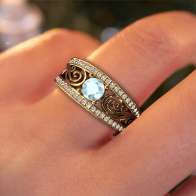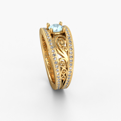 Do you have a vintage fetish? Then this gold Julliana ring suits you perfectly. It's a contemporary design, based on vintage designs. A slightly romantic, extraordinary design! Even more when you customize to your liking. This ajour ring is set with exquisite aquamarine. As you can see, you can simply choose a gemstone that matches your style. Each gemstone is carefully selected by our merchants whom are spread throughout the world. Nothing but the best gems for our expert goldsmith! After all, it is his crowning glory!The ajour Julliana ring, as shown here, can be customized to your liking. Our online tool offers many different options but please feel free to contact us if you want changes made to your Julliana ring, which are unavailable in our online tool.After receiving your order, our goldsmiths will start the creative process of making your Julliana ring. We don't keep stock. This is advantageous because these costs will not be passed on to you. Therefore, we can offer jewellery at exceptionally low prices.To make it easier for you, we offer a 30 day return policy. Check our terms and conditions.