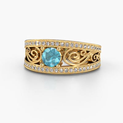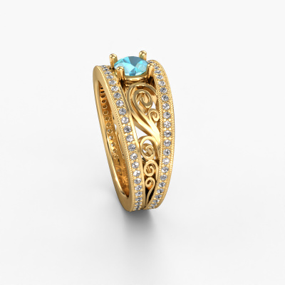 Do you have a vintage fetish? Then this gold Julliana ring suits you perfectly. It's a contemporary design, based on vintage designs. A slightly romantic, extraordinary design! Even more when you customize to your liking. This ajour ring is set with exquisite blue topaz. As you can see, you can simply choose a gemstone that matches your style. Each gemstone is carefully selected by our merchants whom are spread throughout the world. Nothing but the best gems for our expert goldsmith! After all, it is his crowning glory!The ajour Julliana ring, as shown here, can be customized to your liking. Our online tool offers many different options but please feel free to contact us if you want changes made to your Julliana ring, which are unavailable in our online tool.After receiving your order, our goldsmiths will start the creative process of making your Julliana ring. We don't keep stock. This is advantageous because these costs will not be passed on to you. Therefore, we can offer jewellery at exceptionally low prices.To make it easier for you, we offer a 30 day return policy. Check our terms and conditions.