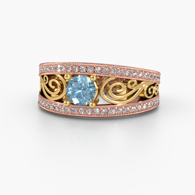 Do you have a vintage fetish? Then this rose gold Julliana ring suits you perfectly. It's a contemporary design, based on vintage designs. A slightly romantic, extraordinary design! Even more when you customize to your liking. This ajour ring is set with exquisite blue lab grown diamonds. As you can see, you can simply choose a gemstone that matches your style. Each gemstone is carefully selected by our merchants whom are spread throughout the world. Nothing but the best gems for our expert goldsmith! After all, it is his crowning glory!The ajour Julliana ring, as shown here, can be customized to your liking. Our online tool offers many different options but please feel free to contact us if you want changes made to your Julliana ring, which are unavailable in our online tool.After receiving your order, our goldsmiths will start the creative process of making your Julliana ring. We don't keep stock. This is advantageous because these costs will not be passed on to you. Therefore, we can offer jewellery at exceptionally low prices.To make it easier for you, we offer a 30 day return policy. Check our terms and conditions.