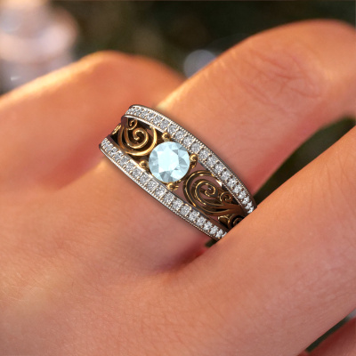 Do you have a vintage fetish? Then this white gold Julliana ring suits you perfectly. It's a contemporary design, based on vintage designs. A slightly romantic, extraordinary design! Even more when you customize to your liking. This ajour ring is set with exquisite aquamarine. As you can see, you can simply choose a gemstone that matches your style. Each gemstone is carefully selected by our merchants whom are spread throughout the world. Nothing but the best gems for our expert goldsmith! After all, it is his crowning glory!The ajour Julliana ring, as shown here, can be customized to your liking. Our online tool offers many different options but please feel free to contact us if you want changes made to your Julliana ring, which are unavailable in our online tool.After receiving your order, our goldsmiths will start the creative process of making your Julliana ring. We don't keep stock. This is advantageous because these costs will not be passed on to you. Therefore, we can offer jewellery at exceptionally low prices.To make it easier for you, we offer a 30 day return policy. Check our terms and conditions.