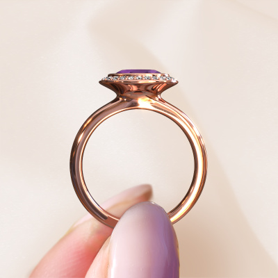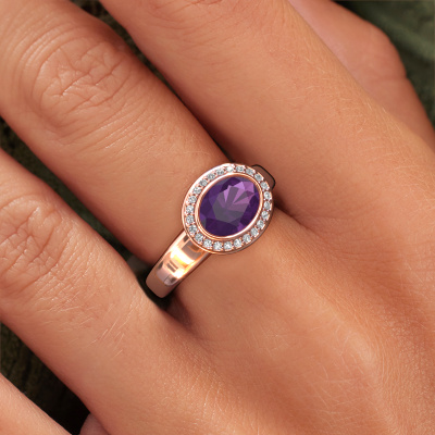 Are you looking for a birthstones ring with an eye-catching single gemstone? How do you like this Salena ring? This rose gold Salena ring is set with a beautiful 8x6 mm oval amethyst. The amethyst is carefully selected by our amethysten suppliers. Subsequently, these birthstones are then set by our goldsmith according to ancient tradition. The ring will then be polished to perfection creating a unique ring with a stunning amethyst. Created especially for you. The best part of this birthstones ring is that you can customize it to your own liking. Your style, your choice, your ring. On top of that, your design rose gold ring will be made by hand with eco-friendly materials! Please feel free to easily customize the ring, using our online tool.By using a combination of the latest modern techniques, combined with ancient crafting, we can make all our rings in our own studio. Each jewel is made to order. This is advantageous because we can offer you a price you won't find anywhere else.To make it easier for you, we offer a 30 day return policy. Check our terms and conditions.