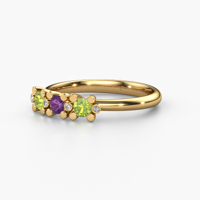 Are you looking for a fashionable ring with small eye-catching gemstones? How do you like this Puk 2 ring? This gold Puk 2 ring is set with beautiful amethysten gemstones. The amethysten are carefully selected by our amethysten suppliers. Subsequently, these gemstones are then set by our goldsmith according to ancient tradition. The ring will then be polished to perfection creating a unique ring with a stunning amethyst. Created especially for you. A customized unique ring is the perfect gift! New exquisite designs are added daily by our team of passionate goldsmiths. And each design can be customized. Simply customize the precious metals and the colour of gemstones which will be used, for example. This makes your design of the unique Puk 2 ring truly unique!By using a combination of the latest modern techniques, combined with ancient crafting, we can make all our rings in our own studio. Each jewel is made to order. This is advantageous because we can offer you a price you won't find anywhere else.To make it easier for you, we offer a 30 day return policy. Check our terms and conditions.
