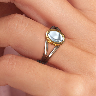 In this photo the white gold Lieselotte ring is set with a cabochon aquamarine. Cabochon means a aquamarine is shaped first, not faceted, into a specific shape, such as a drop, heart or oval cabochon. Subsequently, it is polished until the gemstone has a orb shaped surface. A cabochon gemstone is a stunning, classy eye-catcher that matches perfectly with a contemporary as well as a vintage style. Our expert goldsmiths shape the charming ring to perfection which makes it unique. The cabochon aquamarine is set so its unique qualities are strengthened. How do you like this fantasy white gold ring? Simply customize this Lieselotte ring, using our online tool. Subsequently, your personal charming Lieselotte ring will be made by hand by our goldsmiths. Precious metals and gemstones can be customized to your liking. Do you have specific preferences which are unavailable in our online tool? Please feel free to contact us. We will customize your personal fantasy ring to your liking.After receiving your order, our goldsmiths will passionately start the creative process of making your ring in our own studio. Because we don't have a big stockpile, these costs will not be passed on to you. Our pricing is proof of that! We offer top quality jewels at lowest price, guaranteed.To make it easier for you, we offer a 30 day return policy. Check our terms and conditions.