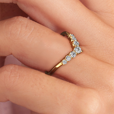 This Imani B stackable ring in 14 Carat gold is set with diamond. This gold stacked Imani B ring is the perfect addition to your ring collection! As the name suggests, it is a ring which can be combined on one finger with another ring. It gives you the opportunity to create your own style. A stacked ring usually represents a certain memory of someone special or a memorable moment. It is common to combine a stacked ring, representing an anniversary, with a wedding ring. But this beautiful ring, combined with your other rings, also makes a classy fashion item. Our goldsmiths passionately create your customized stackable ring to your liking with the utmost care. The gold stackable ring, as shown here, can be customized using our online tool. Feel free to ask our jewel designers for assistance if you want changes made which are unavailable in our online tool. We are happy to answer your questions.By using a combination of the latest modern techniques, combined with ancient crafting, we can make all our rings in our own studio. Each jewel is made to order. This is advantageous because we can offer you a price you won't find anywhere else.To make it easier for you, we offer a 30 day return policy. Check our terms and conditions.