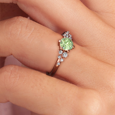 This is a stunning best price rose gold Royce RND ring. It is set with green lab grown diamond. A designer ring, fit for classy women. The ring is designed by our own expert goldsmiths. In our artisan studio, we use a combination of the latest