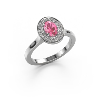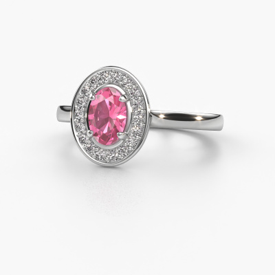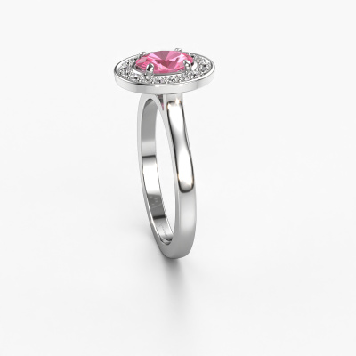 The ring shown above is called Madelon 1. This type of ring is known as a solitaire ring. The platinum ring is set with a 7x5 mm oval pink sapphire centre stone surrounded by smaller sized diamonds. This best price platinum halo ring, is set with a big pink sapphire embraced by smaller sized gemstones. The ring got its name for its halo which the smaller sized diamonds help create. In order to achieve a stunning halo, these smaller sized gemstones have to be aligned perfectly so light reflects evenly on the pink sapphire from every angle. And our expert goldsmiths get the job done. Each carefully selected pink sapphire is set by hand with utmost precision. During manufacturing, light fall is constantly monitored to make sure the special halo effect is still visible. In the end you get a unique ring with a radiant pink sapphire gemstone centrepiece. An exquisite ring indeed! The best part of this best price ring is that you can customize it to your own liking. Your style, your choice, your ring. On top of that, your classic platinum ring will be made by hand with eco-friendly materials! Please feel free to easily customize the ring, using our online tool.Are you on a budget? Please feel free to contact us, so we can go discuss your options. We offer our rings at guaranteed best price, because we make them to order. You won't find such a price anywhere else!To make it easier for you, we offer a 30 day return policy. Check our terms and conditions.