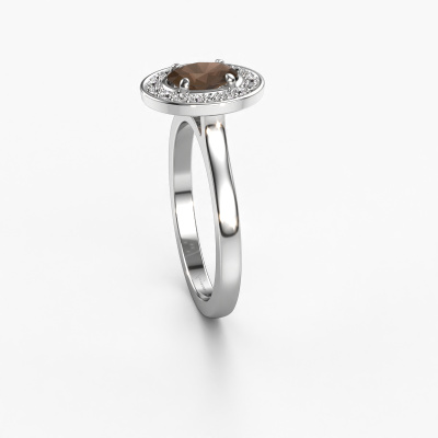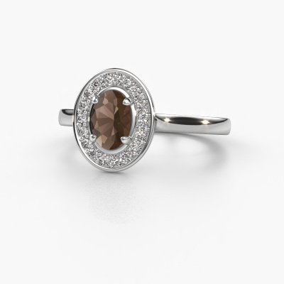 The ring shown above is called Madelon 1. This type of ring is known as a solitaire ring. The platinum ring is set with a 7x5 mm oval smokey quartz centre stone surrounded by smaller sized diamonds. This best price platinum halo ring, is set with a big smokey quartz embraced by smaller sized gemstones. The ring got its name for its halo which the smaller sized diamonds help create. In order to achieve a stunning halo, these smaller sized gemstones have to be aligned perfectly so light reflects evenly on the smokey quartz from every angle. And our expert goldsmiths get the job done. Each carefully selected smokey quartz is set by hand with utmost precision. During manufacturing, light fall is constantly monitored to make sure the special halo effect is still visible. In the end you get a unique ring with a radiant smokey quartz gemstone centrepiece. An exquisite ring indeed! The best part of this best price ring is that you can customize it to your own liking. Your style, your choice, your ring. On top of that, your classic platinum ring will be made by hand with eco-friendly materials! Please feel free to easily customize the ring, using our online tool.Are you on a budget? Please feel free to contact us, so we can go discuss your options. We offer our rings at guaranteed best price, because we make them to order. You won't find such a price anywhere else!To make it easier for you, we offer a 30 day return policy. Check our terms and conditions.