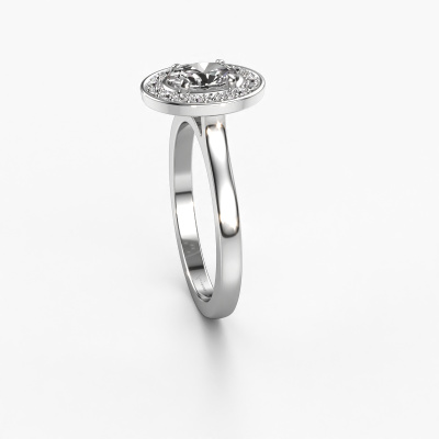 The ring shown above is called Madelon 1. This type of ring is known as a solitaire ring. The platinum ring is set with a 7x5 mm oval zirconia centre stone surrounded by smaller sized diamonds. This best price platinum halo ring, is set with a big zirconia embraced by smaller sized gemstones. The ring got its name for its halo which the smaller sized diamonds help create. In order to achieve a stunning halo, these smaller sized gemstones have to be aligned perfectly so light reflects evenly on the zirconia from every angle. And our expert goldsmiths get the job done. Each carefully selected zirconia is set by hand with utmost precision. During manufacturing, light fall is constantly monitored to make sure the special halo effect is still visible. In the end you get a unique ring with a radiant zirconia gemstone centrepiece. An exquisite ring indeed! The best part of this best price ring is that you can customize it to your own liking. Your style, your choice, your ring. On top of that, your classic platinum ring will be made by hand with eco-friendly materials! Please feel free to easily customize the ring, using our online tool.Are you on a budget? Please feel free to contact us, so we can go discuss your options. We offer our rings at guaranteed best price, because we make them to order. You won't find such a price anywhere else!To make it easier for you, we offer a 30 day return policy. Check our terms and conditions.
