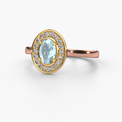 The ring shown above is called Madelon 1. This type of ring is known as a solitaire ring. The 14 Carat rose gold ring is set with a 7x5 mm oval aquamarine centre stone surrounded by smaller sized diamonds. This best price rose gold halo ring, is set with a big aquamarine embraced by smaller sized gemstones. The ring got its name for its halo which the smaller sized diamonds help create. In order to achieve a stunning halo, these smaller sized gemstones have to be aligned perfectly so light reflects evenly on the aquamarine from every angle. And our expert goldsmiths get the job done. Each carefully selected aquamarine is set by hand with utmost precision. During manufacturing, light fall is constantly monitored to make sure the special halo effect is still visible. In the end you get a unique ring with a radiant aquamarine gemstone centrepiece. An exquisite ring indeed! The best part of this best price ring is that you can customize it to your own liking. Your style, your choice, your ring. On top of that, your classic rose gold ring will be made by hand with eco-friendly materials! Please feel free to easily customize the ring, using our online tool.Are you on a budget? Please feel free to contact us, so we can go discuss your options. We offer our rings at guaranteed best price, because we make them to order. You won't find such a price anywhere else!To make it easier for you, we offer a 30 day return policy. Check our terms and conditions.