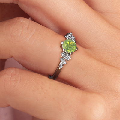 This is a stunning best price platinum Royce RND ring. It is set with peridot. A designer ring, fit for classy women. The ring is designed by our own expert goldsmiths. In our artisan studio, we use a combination of the latest techniques and ancient