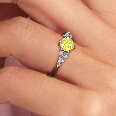 This is a stunning best price white gold Royce RND ring. It is set with yellow lab grown diamond. A designer ring, fit for classy women. The ring is designed by our own expert goldsmiths. In our artisan studio, we use a combination of the latest