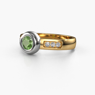 This ring called Charlotte Round is made of 14 Carat gold and is set with tourmaline green. Are you in the market for a unique gold ring with a modern twist? Then this ring might suit you. Simply customize to your or her liking. It suits the contemporary modern woman. This birthstones ring is set with beautiful tourmaline green. This has been carefully selected. Because your ring must be adorned with nothing but the most stunning gemstone. Our expert goldsmith will create your ring in our own studio, where the tourmaline green will be set with great care. The ring will then be polished to perfection to create a stunning ring. After receiving your order, our goldsmiths will passionately start the creative process of making your ring in our own studio. Because we don't have a big stockpile, these costs will not be passed on to you. Our pricing is proof of that! We offer top quality jewels at lowest price, guaranteed.Our team of talented, passionate designers add new ring designs to our online collection daily. Our objective in doing so, is to be able to offer you a wide variety of jewels. Please feel free to request a quote if you have specific wishes for your ring. We guarantee to make you an offer you can't refuse.To make it easier for you, we offer a 30 day return policy. Check our terms and conditions.