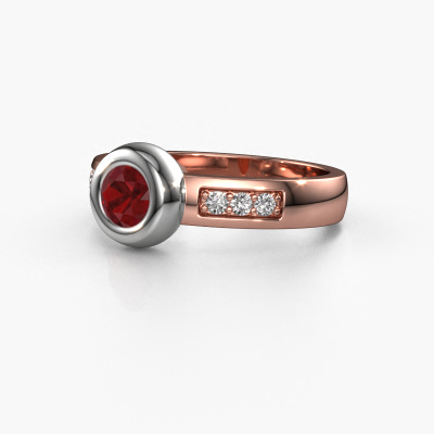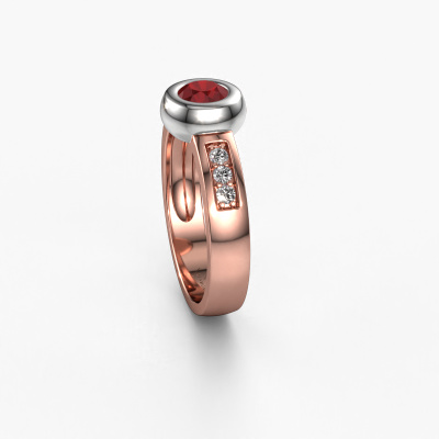 This ring called Charlotte Round is made of 14 Carat rose gold and is set with ruby. Are you in the market for a unique rose gold ring with a modern twist? Then this ring might suit you. Simply customize to your or her liking. It suits the contemporary modern woman. This birthstones ring is set with beautiful ruby. This has been carefully selected. Because your ring must be adorned with nothing but the most stunning gemstone. Our expert goldsmith will create your ring in our own studio, where the ruby will be set with great care. The ring will then be polished to perfection to create a stunning ring. After receiving your order, our goldsmiths will passionately start the creative process of making your ring in our own studio. Because we don't have a big stockpile, these costs will not be passed on to you. Our pricing is proof of that! We offer top quality jewels at lowest price, guaranteed.Our team of talented, passionate designers add new ring designs to our online collection daily. Our objective in doing so, is to be able to offer you a wide variety of jewels. Please feel free to request a quote if you have specific wishes for your ring. We guarantee to make you an offer you can't refuse.To make it easier for you, we offer a 30 day return policy. Check our terms and conditions.