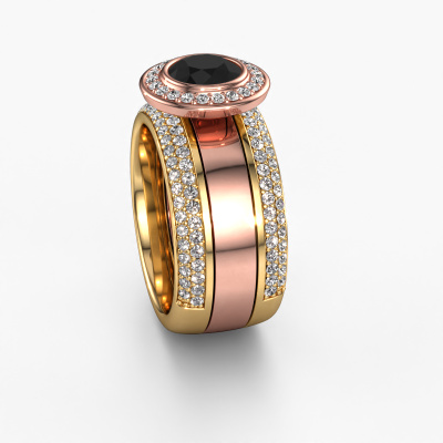 Because of its detailed finish, this wide ring with black diamond has a stylish appearance. A pavé set ring that fits the contemporary woman like a glove. This rose gold ring, our Roxie, is a true eye-catcher indeed! As soon as we know what you