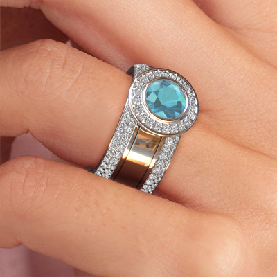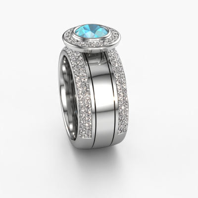 Because of its detailed finish, this wide ring with blue topaz has a stylish appearance. A pavé set ring that fits the contemporary woman like a glove. This platinum ring, our Roxie, is a true eye-catcher indeed! As soon as we know what you desire,