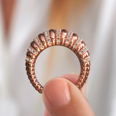 Because of its detailed finish, this wide ring with brown diamond has a stylish appearance. A elegant ring that fits the contemporary woman like a glove. This rose gold ring, our Dawn 14 mm, is a true eye-catcher indeed! As soon as we know what you desire, we will create your ring in our own crafting studio. We work according an innovative process. We use a combination of the latest techniques and ancient traditional craftsmanship, so we are able to create a perfectly designed ring. Our expert goldsmiths strive for perfection so they won't stop until a perfect ring, a true work of art, is created especially for you!Customize your own elegantDawn 14 mm ring, which will then be created by our goldsmiths with great passion. Do you prefer a different option than is shown here in the rose gold Dawn 14 mm ring? Then our online tools offers various options. Feel free to ask us for help if you are unable to succeed. We are happy to answer your questions!After receiving your order, our goldsmiths will passionately start the creative process of making your ring in our own studio. Because we don't have a big stockpile, these costs will not be passed on to you. Our pricing is proof of that! We offer top quality jewels at lowest price, guaranteed.To make it easier for you, we offer a 30 day return policy. Check our terms and conditions.