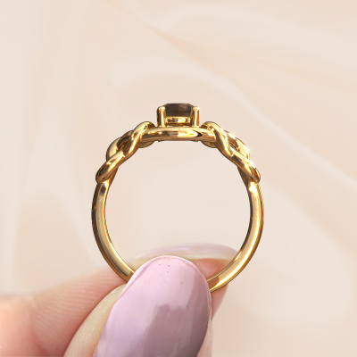 This symbolic gold Zoe ring is set with smokey quartz. For some, a ring is nothing more than a beautiful fashion item but they can become a meaningful keepsake. A ring such as this can be worn daily and it matches numerous different styles. Designing your own unique ring, makes it even more special. You are reminded of its uniqueness every time you look at it. Perhaps it reminds you of someone special. It might bring back memories. Unforgettable moments, represented in one ring. The beauty of it all is that the used precious metals and gemstones will last a lifetime. A lifetime of memories deserves nothing less! The best part of this knot ring is that you can customize it to your own liking. Your style, your choice, your ring. On top of that, your Celtic gold ring will be made by hand with eco-friendly materials! Please feel free to easily customize the ring, using our online tool.By using our modern techniques, we can design and customize the finest quality jewels with the utmost care for you. Our rings are always priced 30 percent lower than other jewellers. We make rings to order, so we don't have to maintain a large stock. If you have a certain budget, we are more than happy to advice you accordingly.To make it easier for you, we offer a 30 day return policy. Check our terms and conditions.