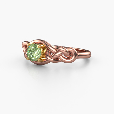 This symbolic rose gold Zoe ring is set with green lab grown diamond. For some, a ring is nothing more than a beautiful fashion item but they can become a meaningful keepsake. A ring such as this can be worn daily and it matches numerous different styles. Designing your own unique ring, makes it even more special. You are reminded of its uniqueness every time you look at it. Perhaps it reminds you of someone special. It might bring back memories. Unforgettable moments, represented in one ring. The beauty of it all is that the used precious metals and gemstones will last a lifetime. A lifetime of memories deserves nothing less! The best part of this knot ring is that you can customize it to your own liking. Your style, your choice, your ring. On top of that, your Celtic rose gold ring will be made by hand with eco-friendly materials! Please feel free to easily customize the ring, using our online tool.By using our modern techniques, we can design and customize the finest quality jewels with the utmost care for you. Our rings are always priced 30 percent lower than other jewellers. We make rings to order, so we don't have to maintain a large stock. If you have a certain budget, we are more than happy to advice you accordingly.To make it easier for you, we offer a 30 day return policy. Check our terms and conditions.