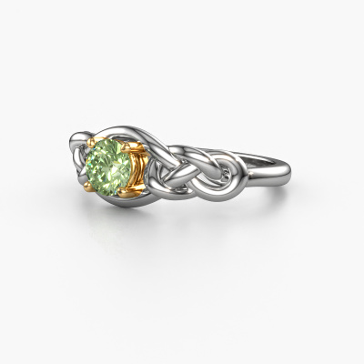 This symbolic white gold Zoe ring is set with green lab grown diamond. For some, a ring is nothing more than a beautiful fashion item but they can become a meaningful keepsake. A ring such as this can be worn daily and it matches numerous different styles. Designing your own unique ring, makes it even more special. You are reminded of its uniqueness every time you look at it. Perhaps it reminds you of someone special. It might bring back memories. Unforgettable moments, represented in one ring. The beauty of it all is that the used precious metals and gemstones will last a lifetime. A lifetime of memories deserves nothing less! The best part of this knot ring is that you can customize it to your own liking. Your style, your choice, your ring. On top of that, your Celtic white gold ring will be made by hand with eco-friendly materials! Please feel free to easily customize the ring, using our online tool.By using our modern techniques, we can design and customize the finest quality jewels with the utmost care for you. Our rings are always priced 30 percent lower than other jewellers. We make rings to order, so we don't have to maintain a large stock. If you have a certain budget, we are more than happy to advice you accordingly.To make it easier for you, we offer a 30 day return policy. Check our terms and conditions.