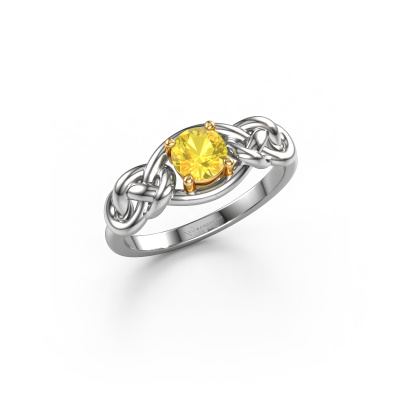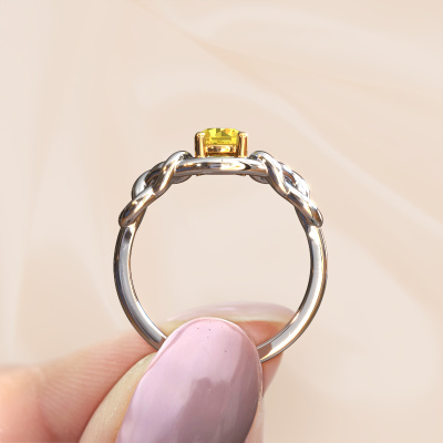 This symbolic white gold Zoe ring is set with yellow sapphire. For some, a ring is nothing more than a beautiful fashion item but they can become a meaningful keepsake. A ring such as this can be worn daily and it matches numerous different styles. Designing your own unique ring, makes it even more special. You are reminded of its uniqueness every time you look at it. Perhaps it reminds you of someone special. It might bring back memories. Unforgettable moments, represented in one ring. The beauty of it all is that the used precious metals and gemstones will last a lifetime. A lifetime of memories deserves nothing less! The best part of this knot ring is that you can customize it to your own liking. Your style, your choice, your ring. On top of that, your Celtic white gold ring will be made by hand with eco-friendly materials! Please feel free to easily customize the ring, using our online tool.By using our modern techniques, we can design and customize the finest quality jewels with the utmost care for you. Our rings are always priced 30 percent lower than other jewellers. We make rings to order, so we don't have to maintain a large stock. If you have a certain budget, we are more than happy to advice you accordingly.To make it easier for you, we offer a 30 day return policy. Check our terms and conditions.